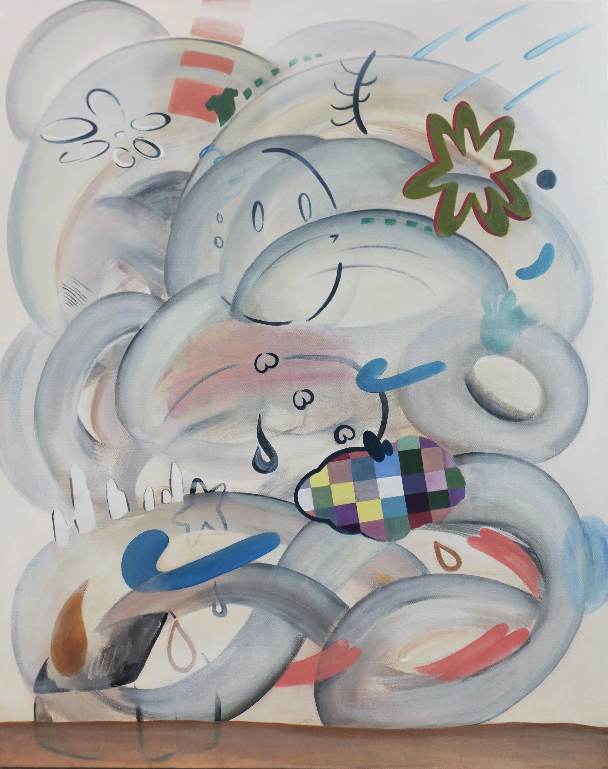 It rains inside, 30x24 in, 2025, Acrylic and oil on canvas